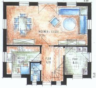 Erdgeschoß in qm: Wohnen/Essen: 37,94 - Küche: 10,49 - Flur: 6,18 HWR: 8,46 - WC: 1,97